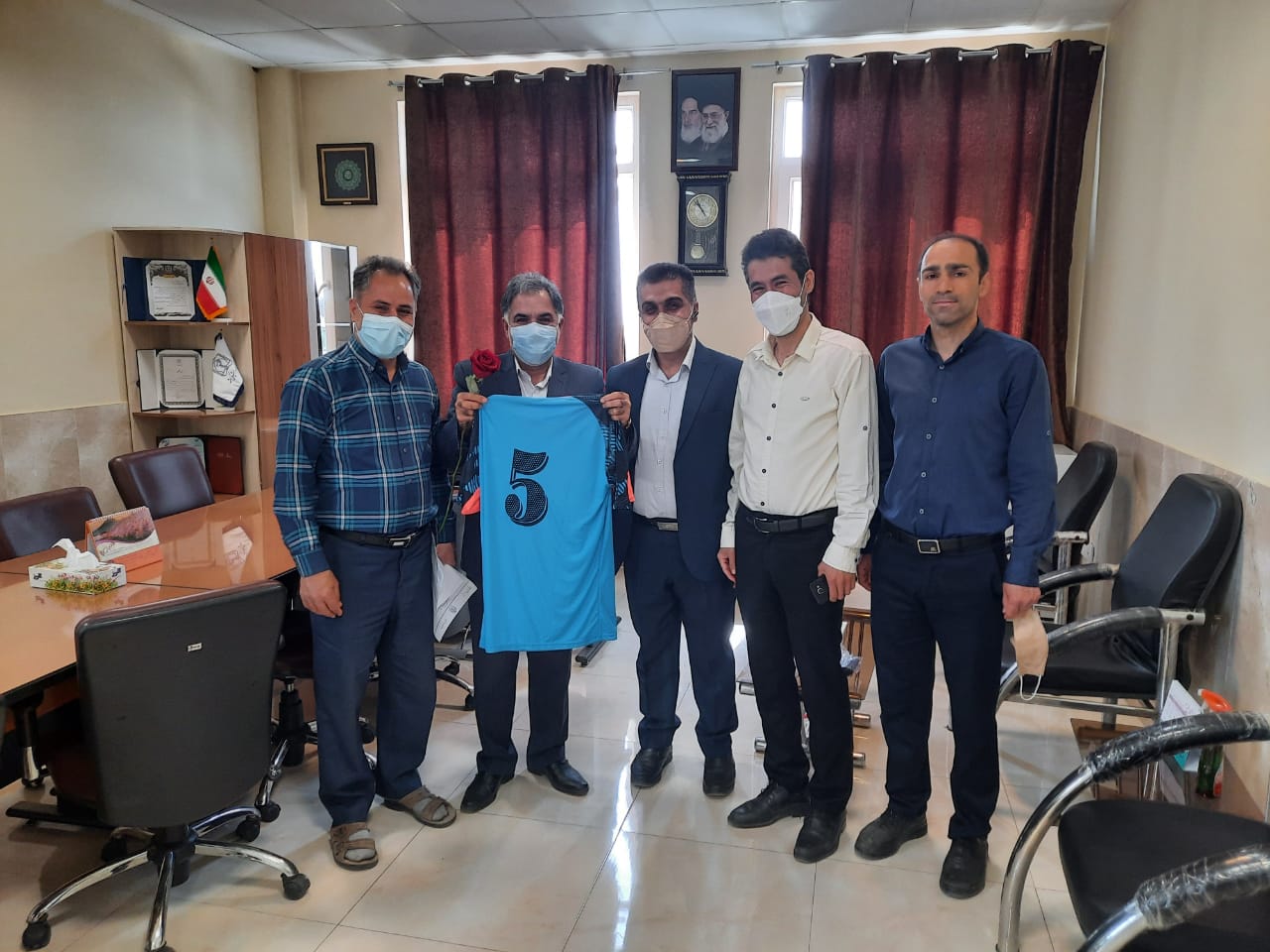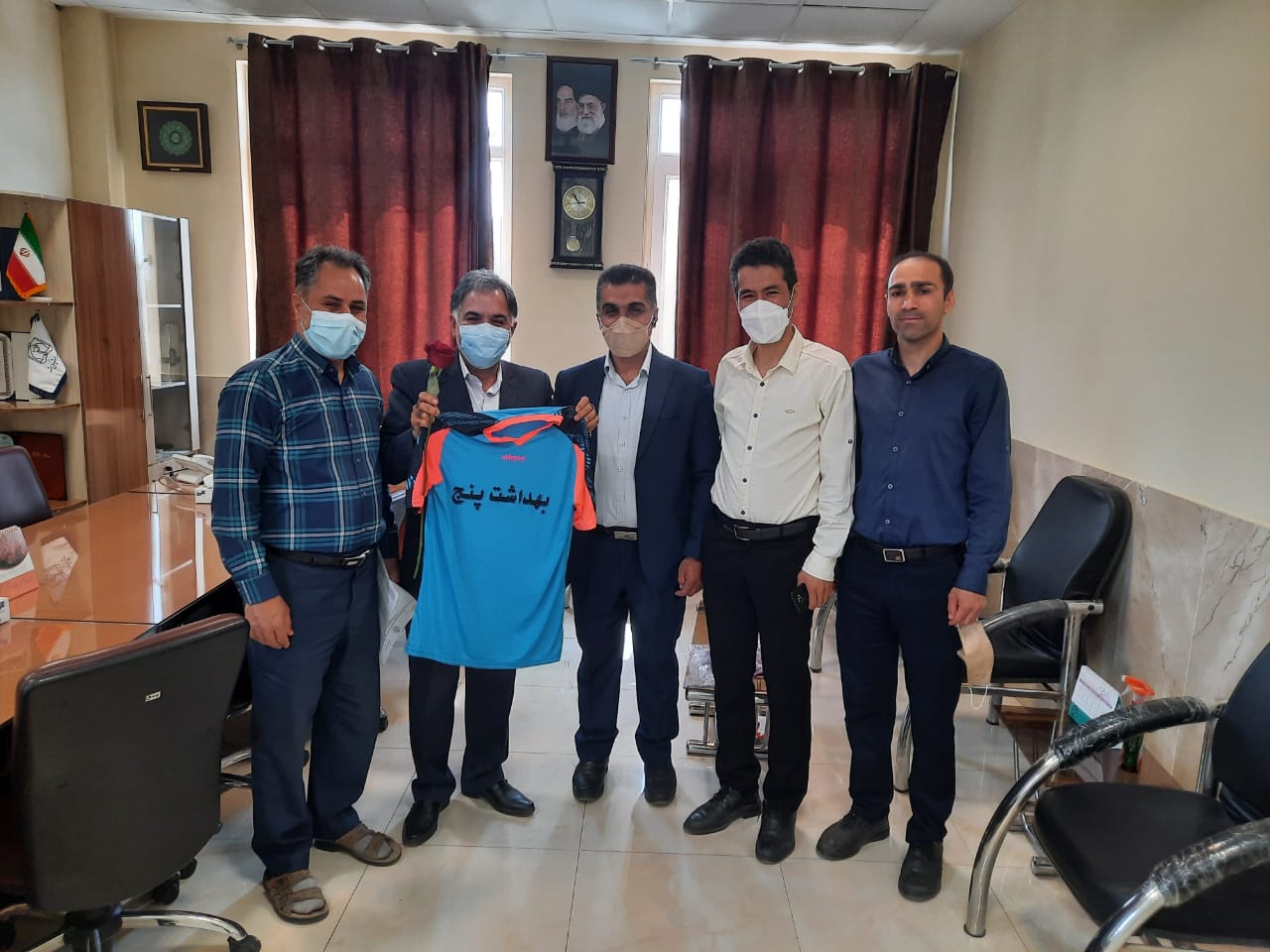 ورزشکاران مرکز بهداشت شماره پنج مشهد مقدس ،به پاسداشت حمایت و پشتیبانی های بی بدیل جناب آقای دکتر صحی زاده از ورزش کارکنان ، پیراهن ورزشی شماره پنج تیم فوتسال مرکز را به ایشان اهدا نمودند .