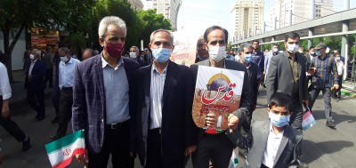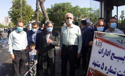 گزارش تصویری شرکت پرشور ریاست ،معاون فنی و سایر مسئولین و پرسنل مرکز بهداشت شماره پنج مشهد مقدس در راهپپمایی روز قدس در آخرین جمعه ماه مبارک رمضان ۱۴۰۱ با هدف لبیک به فرمان امام راحل و رهبری عظیم الشان انقلاب و ثابت کنند بر سر عهدی که بسته اند، ایستاده اند .