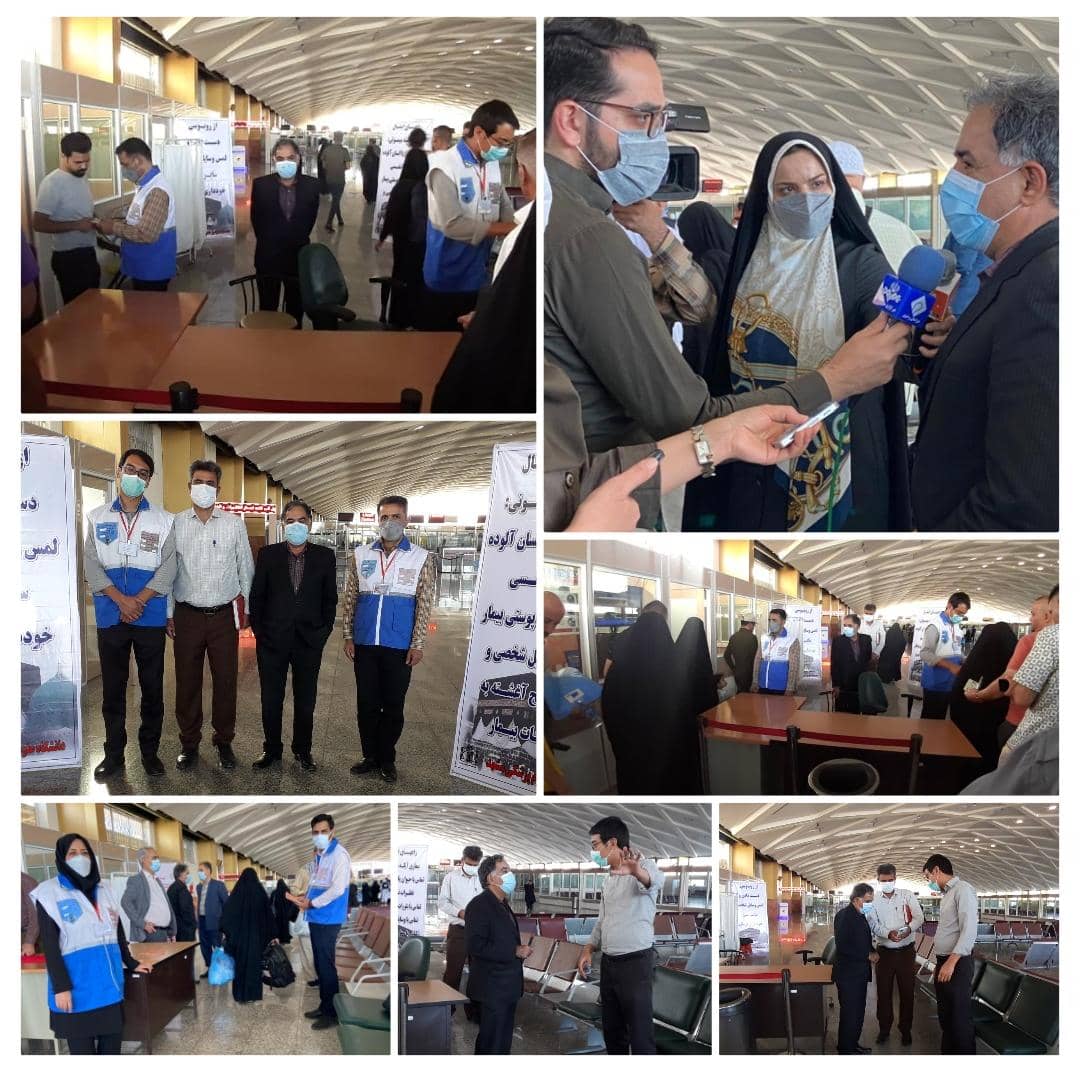 بازدیدهای سرزده اقای دکتر صحی زاده، ریاست مرکز بهداشت شماره پنج مشهد از ارائه مراقبتهای بهداشتی مرزی به حجاج بازگشته از بیت الله الحرام در فرودگاه بین المللی شهید هاشمی نژاد مشهد