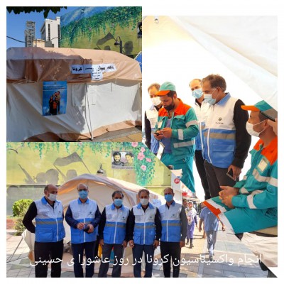 برپایی ایستگاه سلامت موقت در خیابان امام رضا (ع) و ارائه خدمات واکسیناسیون ، سنجش فشار خون و توزیع ماسک و پمفلت آموزشی،همزمان با استقرار کارشناسان بهداشت در مسیر تردد عزاداران حسینی در روز عاشورا _ مرکز بهداشت شماره ۵ مشهد مقدس