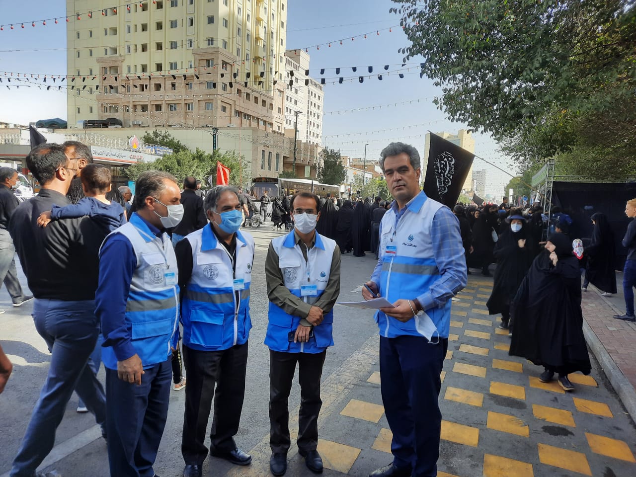 نظارت و بازدید ریاست محترم مرکز بهداشت شماره پنج مشهد اقای دکتر صحی زاده و معاون فنی مرکز اقای مهندس قهار از برنامه حضور کارشناسان بهداشت در مراسم اربعین حسینی واقع درخیابان امام رضا (ع) ساعت استقرار ۸صبح تا پایان برنامه اربعین حسینی-۱۴۰۱