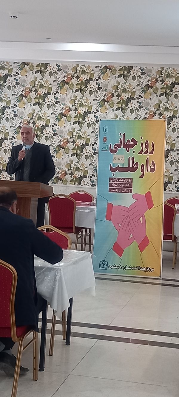 به گزارش روابط عمومی مرکز بهداشت شماره پنج مشهد ؛ به مناسبت روز جهانی داوطلب سلامت ، مراسم گرامیداشتی با حضورجناب آقای دکتر صادقی مدیر گروه آموزش و ارتقاء سلامت معاونت بهداشتی دانشگاه ،جناب آقای مهندس قهار،معاون فنی مرکز بهداشت شماره پنج مشهد و جناب آقای مهندس قائمیان، مسئول حراست به اتفاق جمعی از منتخبان داوطلبان سلامت، داوطلبان سلامت محله و اعضای کانون سلامت محله در سالن همایشهای دانشگاه علوم پزشکی برگزار گردید .