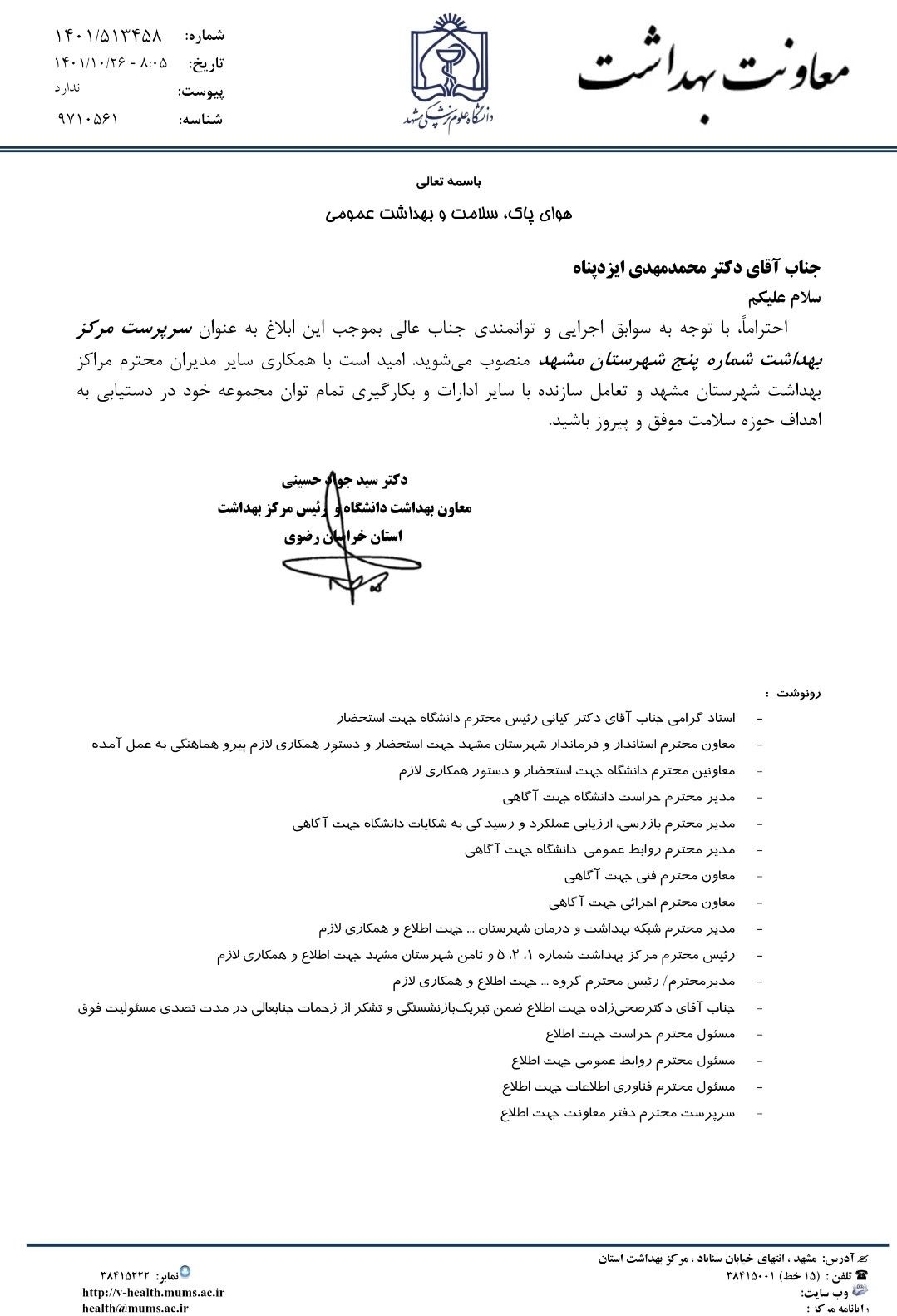صم سیده فرزانه اخبار 27 دی 1401 بازدید: 102 امتیاز: ( 0 Rating ) ابلاغ انتصاب ریاست محترم مرکز بهداشت شماره پنج مشهد امتیاز کاربران لطفا رای دهید رای 1 رای 2 رای 3 رای 4 رای 5 قبلی بعدی