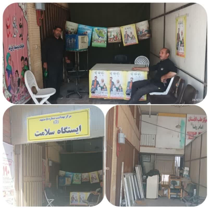 ایستگاه سلامت مهدیه واقع در ابتدای امام رضای ۸ جهت ارائه خدمت به عزاداران اباعبدالله الحسین(ع) و زائرین و مجاورین بارگاه ملکوتی ثامن الحجج(ع) در ایام عاشورا و تاسوعای حسینی را ه اندازی شد. شروع به کار ایستگاه از ساعت ۱۷ امروز تا ساعت ۲۲ روز عاشورای حسینی با ارائه خدمات شامل آموزش بهداشت،ویزیت بیمار،اندازه گیری فشارخون ،اندازه گیری!قند خون .مشاوره فرزند آوری و جوانی جمعیت ،توزیع محتوی آموزشی ،مراقبت سندرومیک مراجعین ،کشف و گزارش فوری موارد احتمالی طغيان می باشد.