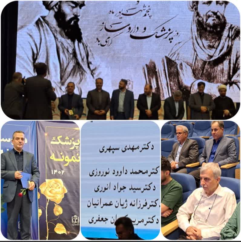 در این مراسم از مقام شامخ انسانی و علمی پزشکان ارجمند تجلیل به عمل آمد که ضمن عرض تبریک به پزشکان گرانقدر بالاخص همکاران محترم مرکز بهداشت شماره ۵ مشهد مقدس و به طور ویژه تر حضور جناب آقای دکتر داوود نوروزی، جناب آقای دکتر سید جواد انوری و سرکار خانم دکتر فرزانه ژیان عمرانیان که به عنوان پزشکان نمونه دانشگاه علوم پزشکی مشهد معرفی شدند، تبریک عرض نموده سلامتی، سعادت و توفیق روزافزون ایشان را از حضرت باری تعالی آرزومندیم .