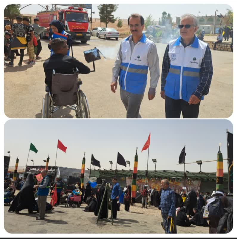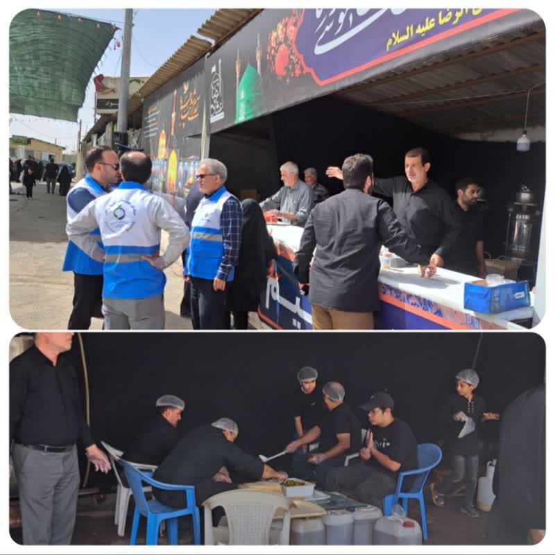 بازدید آقای دکتر ایزد پناه ، ریاست محترم مرکز بهداشت شماره پنج مشهد مقدس به اتفاق مدیر گروه واحد سلامت محیط و کار مرکز از موکب های بین راهی دهه مسیرزائرین پیاده حضرت علی بن موسی الرضا المرتضی (ع) در مسیر جاده قدیم ملک آباد به مشهد و بررسی چگونگی خدمت رسانی به ایشان ،در دهه پایانی صفر