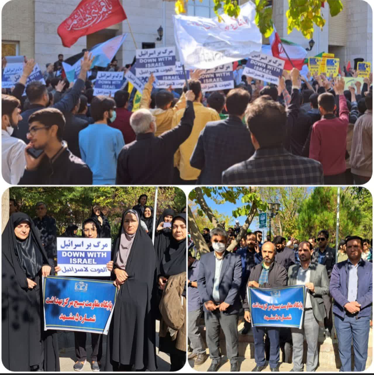 هم اکنون حضور پرسنل مرکز بهداشت شماره پنج مشهد مقدس در تجمع بزرگ دانشگاهیان علوم پزشکی مشهد در محکومیت اقدام رژیم جعلی اسرائیل در بمباران بیمارستان غزه و حمایت از مردم مظلوم فلسطین