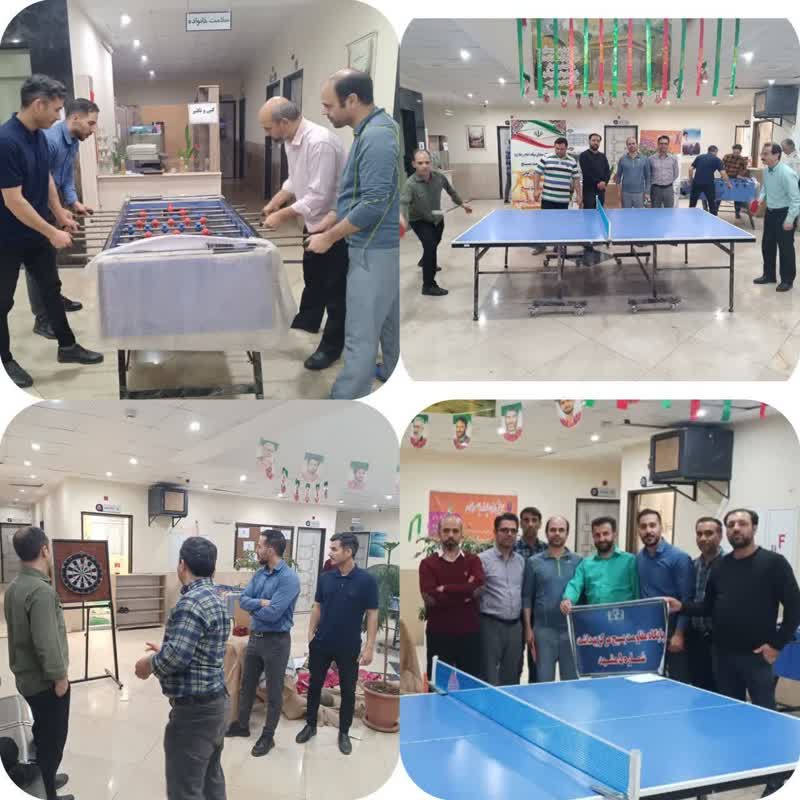 به گزارش روابط عمومی مرکز بهداشت شماره پنج مشهد مقدس، به مناسبت گرامیداشت هفته بسیج سری مسابقات ورزشی ویژه آقایان در رشتههای تنیس روی میز، فوتبال دستی و دارت برگزار گردید و نفرات اول تا سوم این مسابقات توسط آقایان رضا رحمانی(نفر اول)، احمد کریمدادی(نفر دوم)، مهندس آهویی و حمید حامد(نفرسوم) در رشته تنیس روی میز، جواد الهامی نیا و موسی باقرزاده در رشته فوتبال دستی، و محمد حسن مطبوع در رشته دارت کسب شد. ضمن عرض تبریک و تهنیت به ایشان، سلامتی و موفقیت روزافزونشان را از درگاه ایزد منان خواستاریم .